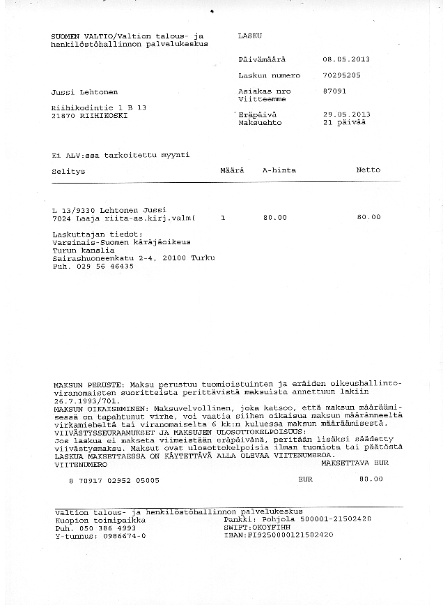 And according to the local laws, Finns were forced to release you 7 month's ago. Before Christmas 2012. November 9th 2012.