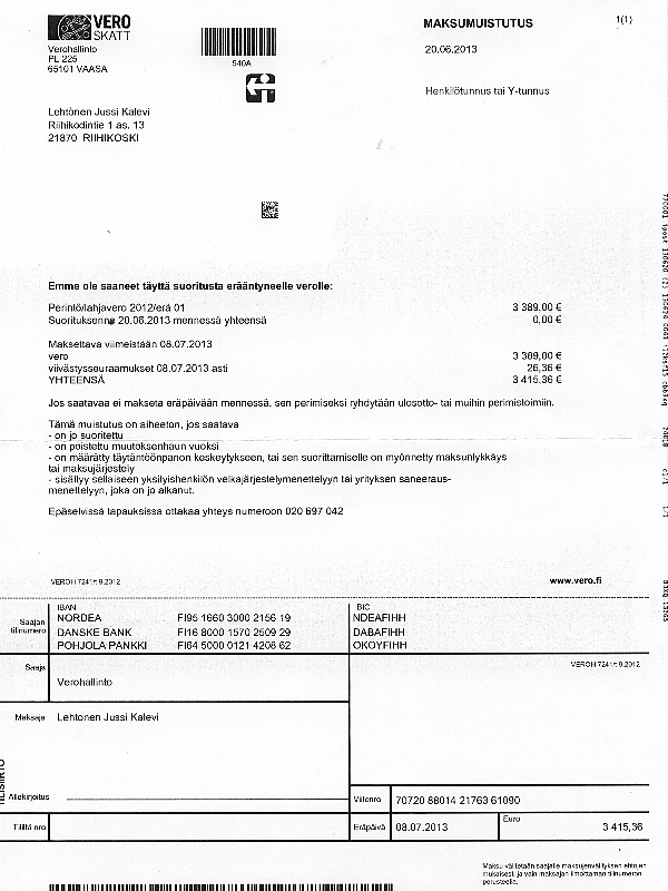 So it seems. Finns try collect taxes from the money they were supposed to release in the November 2012. Sent me a reminder on 20th June. Due date was 8th July 2013.So it was not Bingo. The train accident in Canada matches to the due date ?