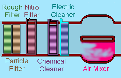 Cars would be very efficient vacuum cleaners. Common engine in moving car uses 2 000 to 3 000 liters fresh air in one minute. With efficient air filters you can keep the air in your city clean. The recently cleaned air is hot, it raises up. It is replaced with colder dirty air. Dirt is easier to clean before than after you burn it. Particles are bigger and stronger.