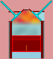 Then you need the temperature-pressure system, with what the mixture burns. It seems that the fire adds temperature-pressure system into gases initial system. Quite obvious that the addition takes place with efficiency. Efficiency gets poorer, when initial temperature-pressure system grows or is too big.In the picture you see pressure system for fire. The values of the pressure is dependent on cylinders filling ratio.