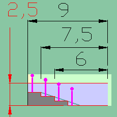Lower picture shows standing 2 meter person in room height ( 2.5 meter ) media room. If another side of the room is over 6 meters, you should always raise the roof. The line behind shape shows 0.5 meter hike per row, it goes with 3:1 steps, possible in the room.
