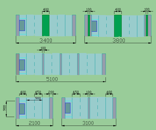 In the picture you see basic dimensions for streets and roads. At the top there are two park avenue street layouts.Carriage ways are 9 meters and two lane systems. 4.5 meters is slightly more than widest current roads and streets.
