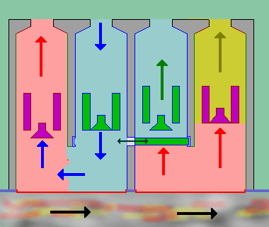 ![]() Combustion collector has 3 strokes. Straight forwarded system has to embed the 3rd stroke into 2 stroke system. In the picture 3rd stroke handler is the plate, which moves in between two operational unit. Rolling collector can handle 3 stroke system without additional arrangements.