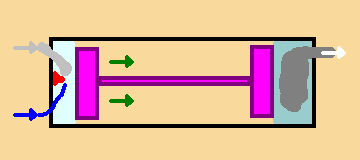 Filling of the cylinder begins the preparations for fire and pressure creation. 100% filling comes simply with opening of inlet valve. When you move piston downwards, the created small vacuum fills the cylinder and balances the pressure in cylinder and inlet manifold. Free filling consumes around 5% from engine power-pressure. In current system you use latch for partial loading. With latch you limit the amount of mixture, that goes into cylinder. The maximum vacuum is 20% - 30% from full volume.