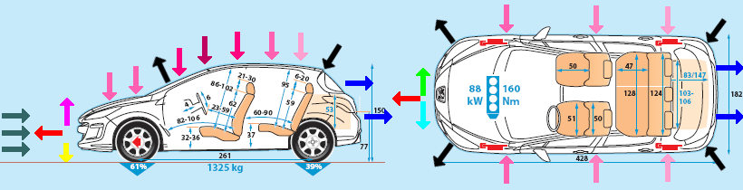The air resistance system for Peugeot 308 from the year 2008.If you use four directions for the force