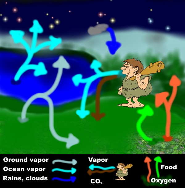 Components of the circle are Oxygen and CxHx compounds, which converts into water and CO2.According Jewish Genesis, water and carbon dioxides came before oxygen and carbohydrates ... plus the carbohydrate derivates, fat-grease-butter-oil and booze-spirit-alcohol. This fits into idea, that components of life come from Earth's core. The temperatures inside crust are so high, that everything burns. All CxHx jewels and gemstones are for example burned compounds. Diamond is the only gemstone, which is not CxHx compound. It's pure carbon. All gemstones are mixed into rocks and originally into liquid lava, which comes out from core.