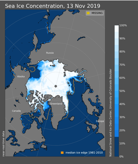 The graphic doesn't show the thickness of ice. They show the amount ice and ice floats at the poles.Wednesday, November 27th 2019- Weather review