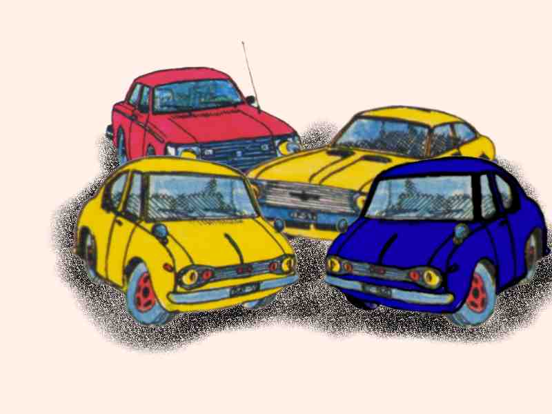 front there are two Nissan 100A:s. Small and popular cars in Europe. Toyota