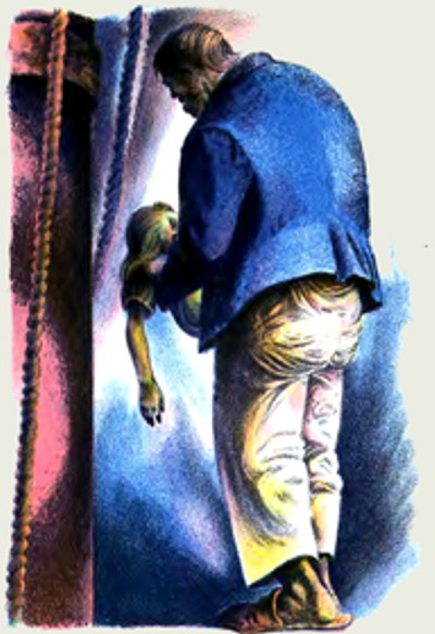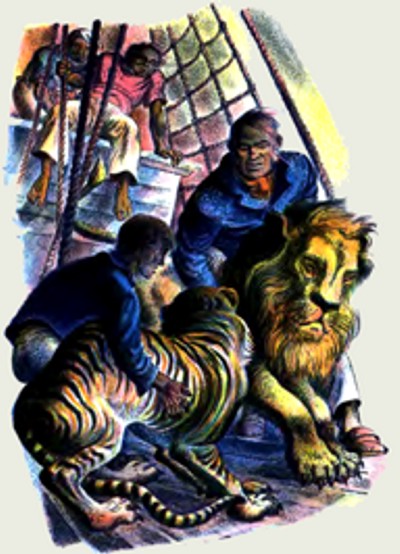 Kids hide into a rowboat, which delivers supplies to a big sail ship.
