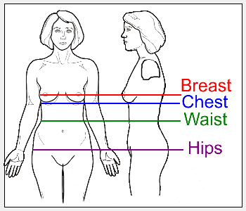 | Woman's measures | - | Breast | - | Waist | - | Hips | + | Chest | Diff | ||